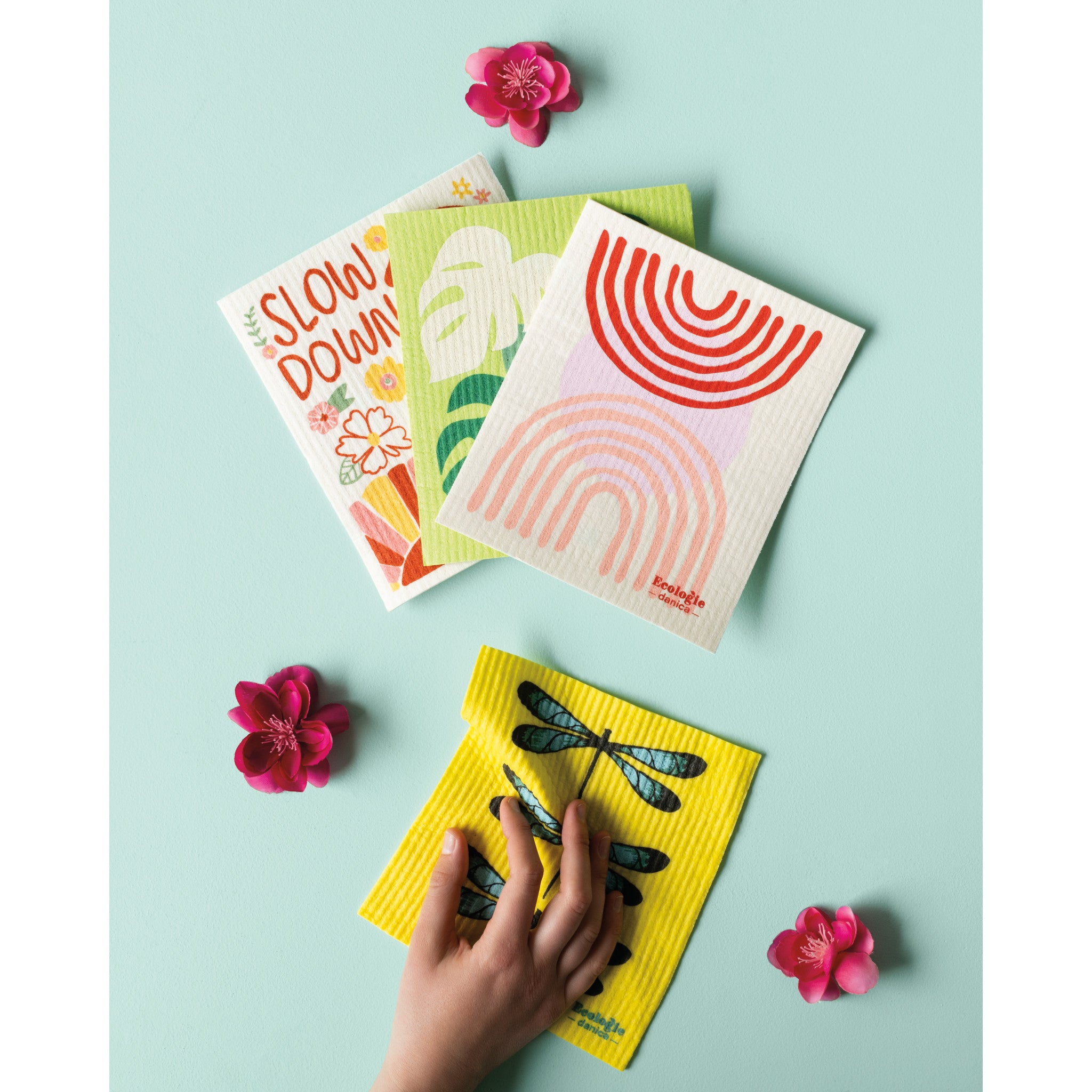 To clean, toss in the washing machine or place on the top rack of the dishwasher. Lay flat to dry. When your Swedish sponge cloth has reached the end of its lifecycle (9 months or even more!), toss in the compost.